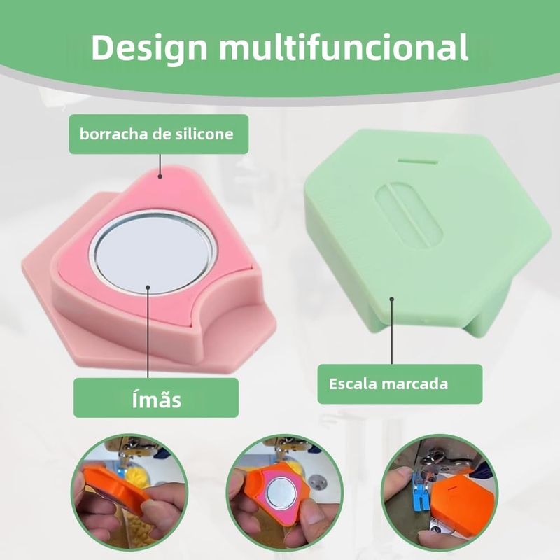 🔥🔥🔥Guia de costura multifuncional polígono com escala, guia magnético de silicone com escala, ferramenta multifuncional polígono forte medidor magnético acessório de costura (rosa)
