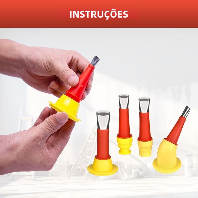 Design Inteligente: O nosso bocal para enchimento de costuras apresenta uma boca num ângulo de 45 graus adaptada às necessidades de cada fenda no uso diário. Contém uma capa protetora independente para prevenir eficazmente bloqueios e desperdícios.