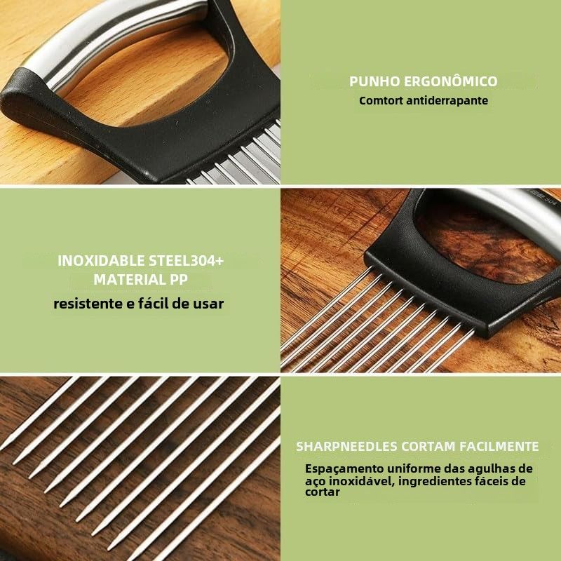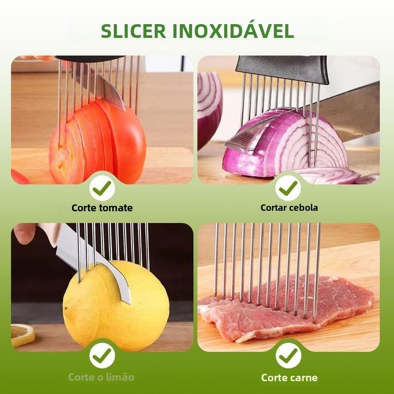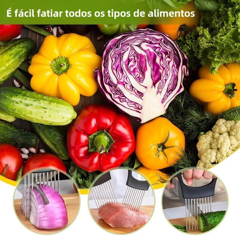 🔥🔥🔥2025 Novo suporte de fatia de cebola em aço inoxidável Cortador de limão cortador de vegetais, suporte de cebola atualizado para corte, ferramenta assistente de corte de picador de cozinha para carne, cebola, batata (2 peças)