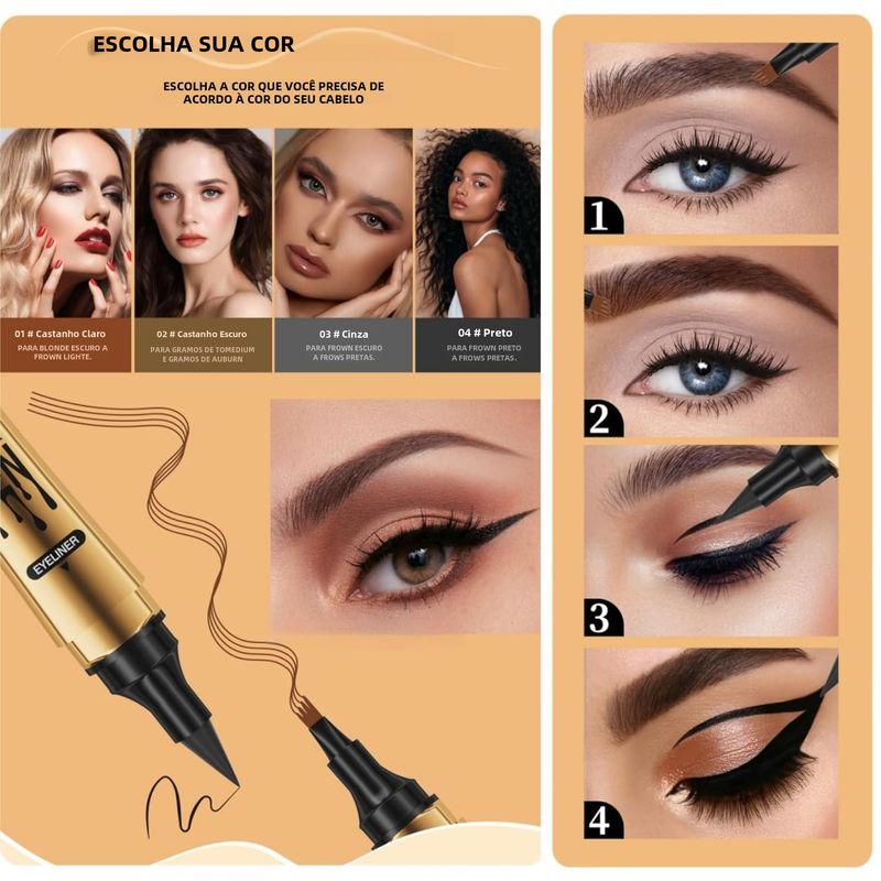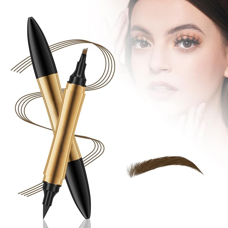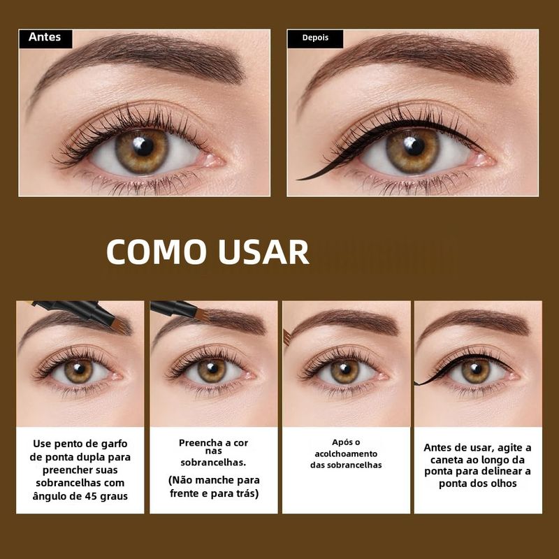 🔥🔥🔥Lápis de sobrancelha mágico 2 em 1, caneta de tatuagem de sobrancelha multifuncional 3D Microblading atualizada 2024, ponta de 4 garfos com delineador (castanho escuro)