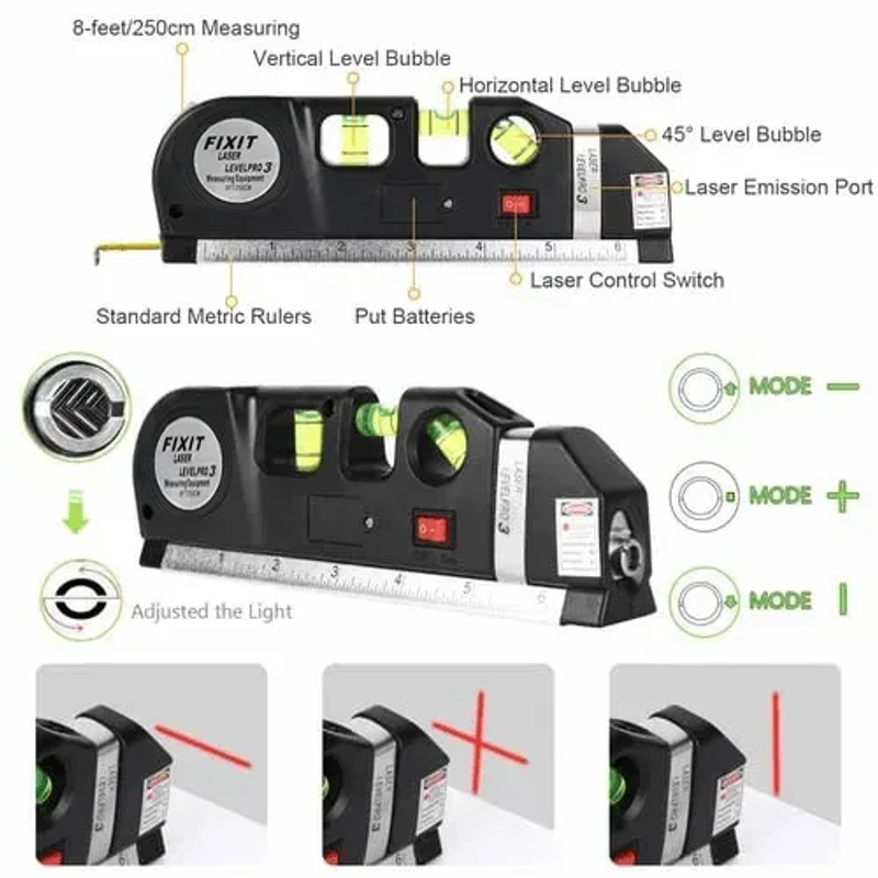 Uma ferramenta de nível laser ideal para uso interno, projetada para qualquer situação que exija medições precisas, como instalação de prateleiras suspensas, armários, azulejos e porta-retratos. Garantia de resultados com precisão em todos os trabalhos que requerem linhas retas e medições exatas.