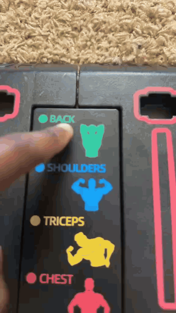 Cores diferentes indicam grupos musculares diferentes, como profissionais que o guiam através de um treino de força intenso. Pode fazer exercícios para as costas, exercícios para o peito, exercícios para os ombros, exercícios para os tríceps e, claro, pode desafiar mais padrões de exercícios para se elevar a um nível superior.