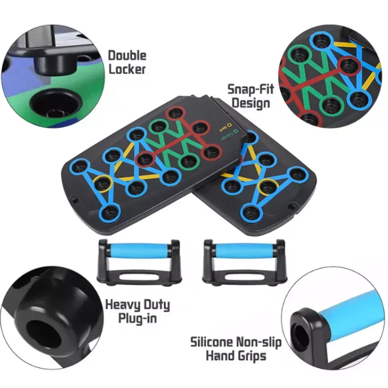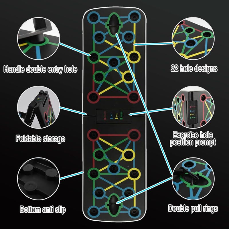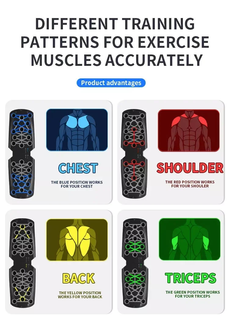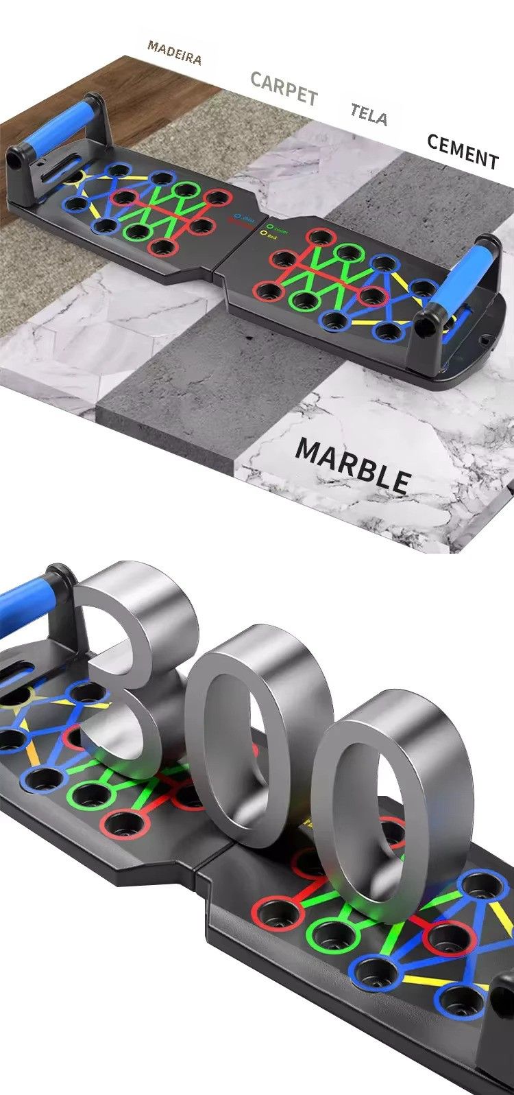 * A standard pushup workout stimulates muscle groups more precisely for maximum effect,Build strong muscles quickly.* Um exercício de flexões normal estimula os grupos musculares com maior precisão para um efeito máximo.