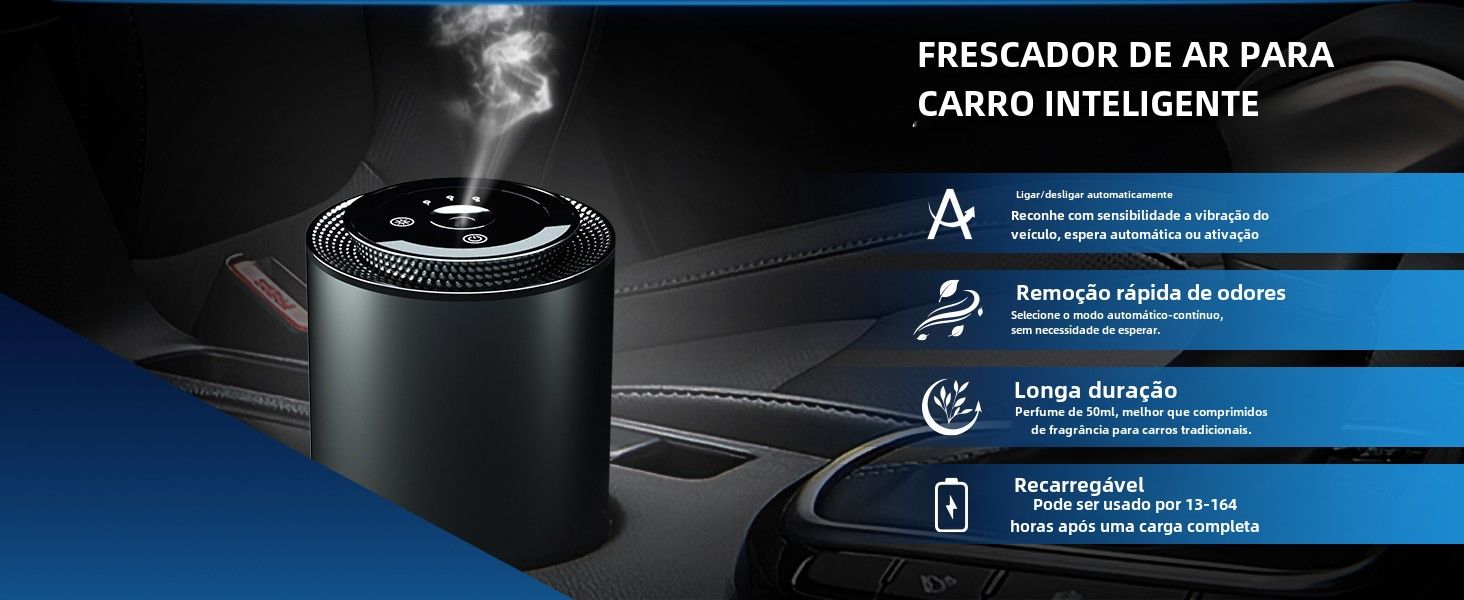 Inteligente Auto On/Off, equipado com recursos inteligentes, este difusor de aroma liga/desliga automaticamente com o carro. Não há necessidade de operação manual, proporcionando comodidade durante suas viagens.