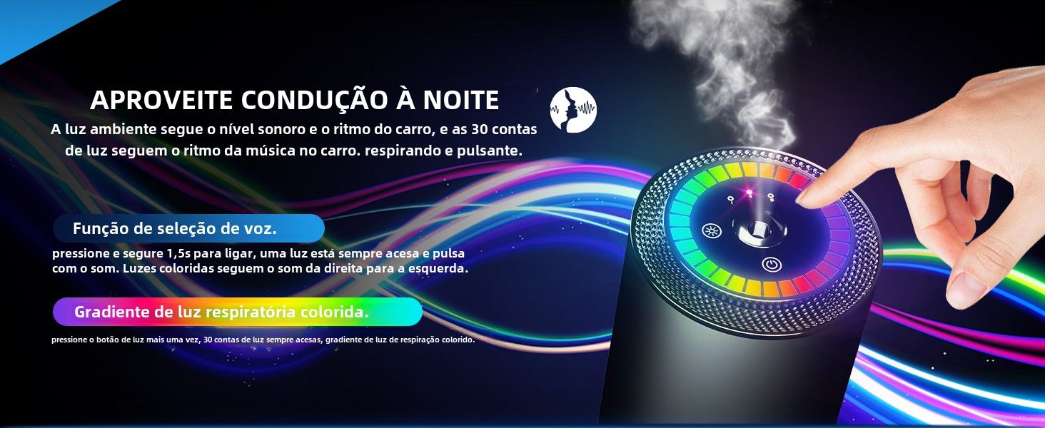Projeção hipnotizante, Adicione um toque de atmosfera ao interior do seu carro com o design de luz de captação. O difusor de aroma projeta estrelas hipnotizantes, criando um ambiente tranquilo e encantador.